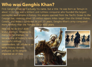 In this lesson, learn about the history of Genghis Khan: ruthless conqueror, fearless commander, and ruler of one of the largest empires in history!